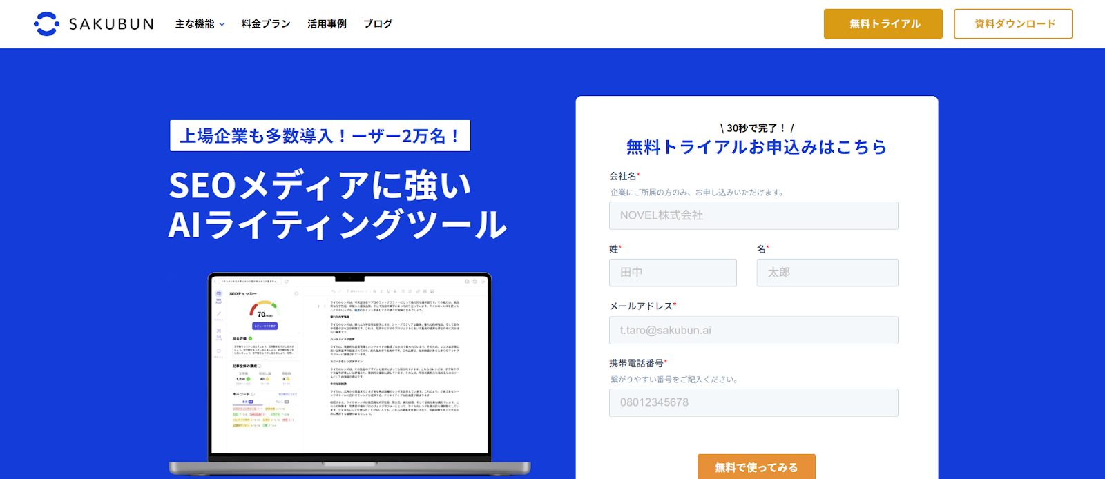 日本のユーザーのために開発された、国産AIライティングアシスタントの代表的なツールです。