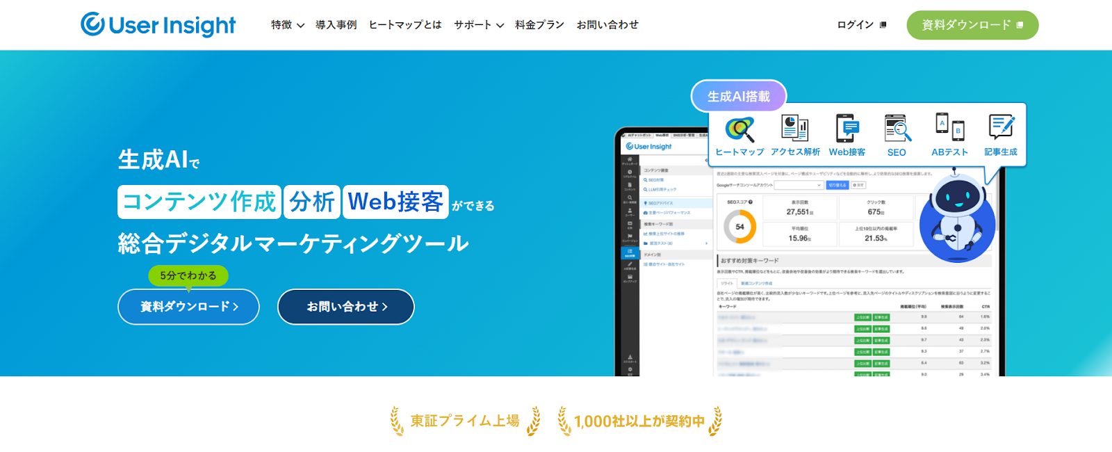 官公庁や大手企業での導入実績も多く、「どのようなユーザーが、どのようにページを見ているのか」を多角的に把握できます。BtoBサイトや、ターゲット分析を重視したWeb改善に適しています。