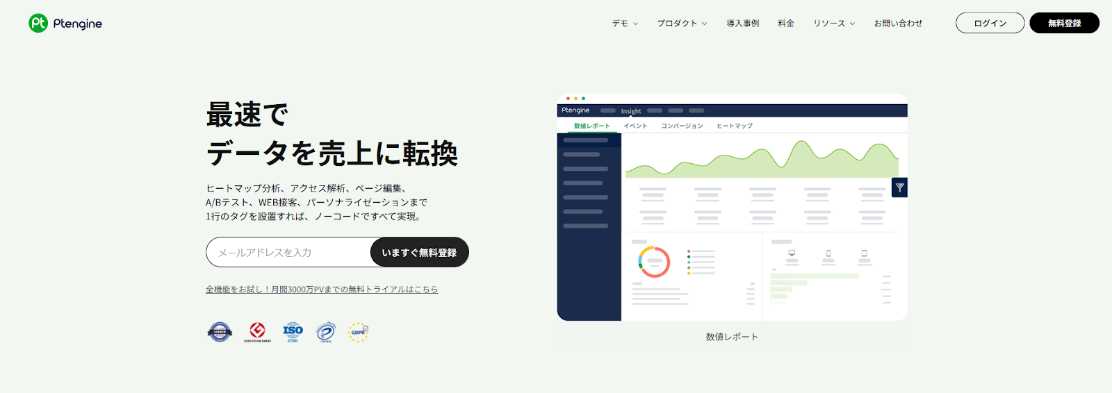 分析結果をもとにツール上でデザインを編集してABテストを実施でき、改善サイクル(PDCA)を高速で回せます。データ分析から施策実行までを分断せずに行いたい企業におすすめのツールです。