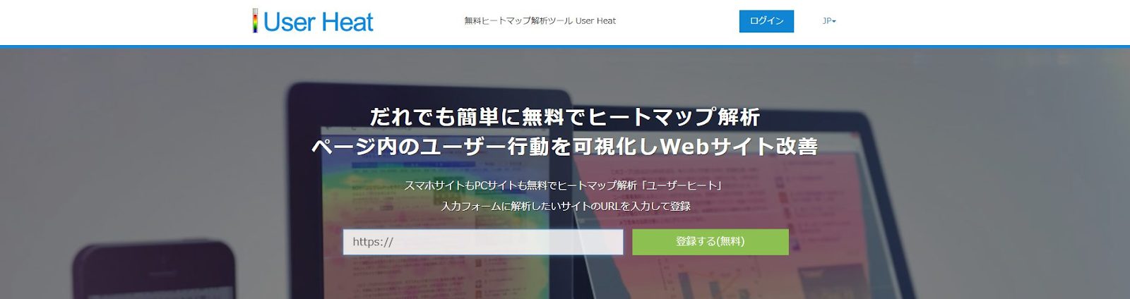 User Heatは、株式会社ユーザーローカルが提供する無料のヒートマップツールです。熟読エリアや終了エリア、クリックエリアなど5種類のヒートマップを無料で利用でき、月間30万PVまで無料で解析できます。