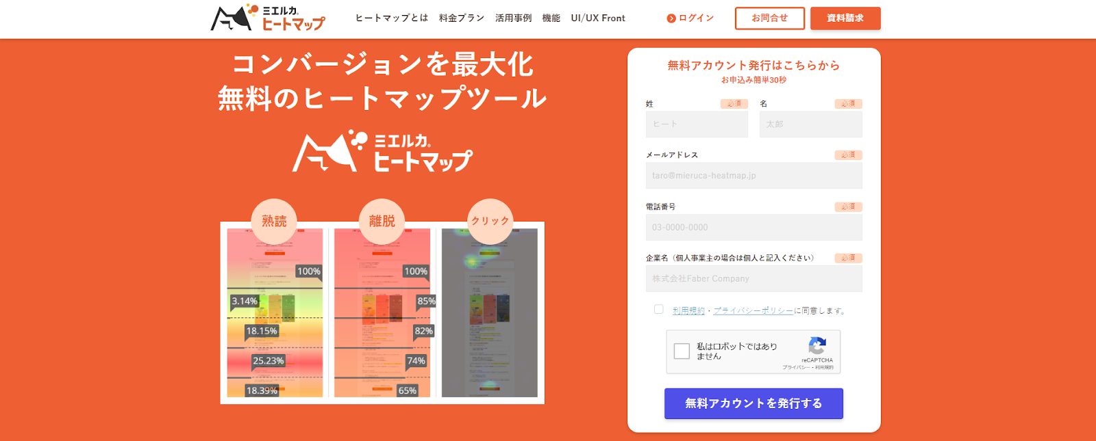 ミエルカヒートマップは、株式会社Faber Companyが提供するヒートマップツールです。