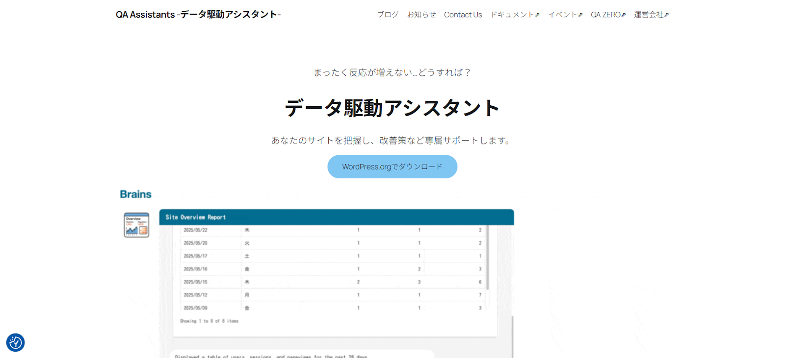 QA Assistantsは、WordPressにプラグインを入れるだけで導入できるヒートマップツールです。外部サーバーへデータを送るのではなく、自社サーバー内にデータを蓄積するため、セキュリティ面でも安心感があります。タグ設置などの専門知識が不要で、プラグインを有効化するだけで月間10万PVまで無料で計測可能です。