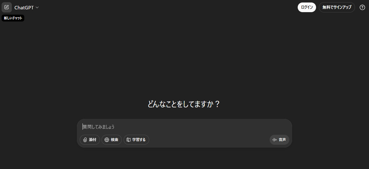 | 質問する | 「ChatGPTとは?」など、自身が知りたいことをそのまま入力する |