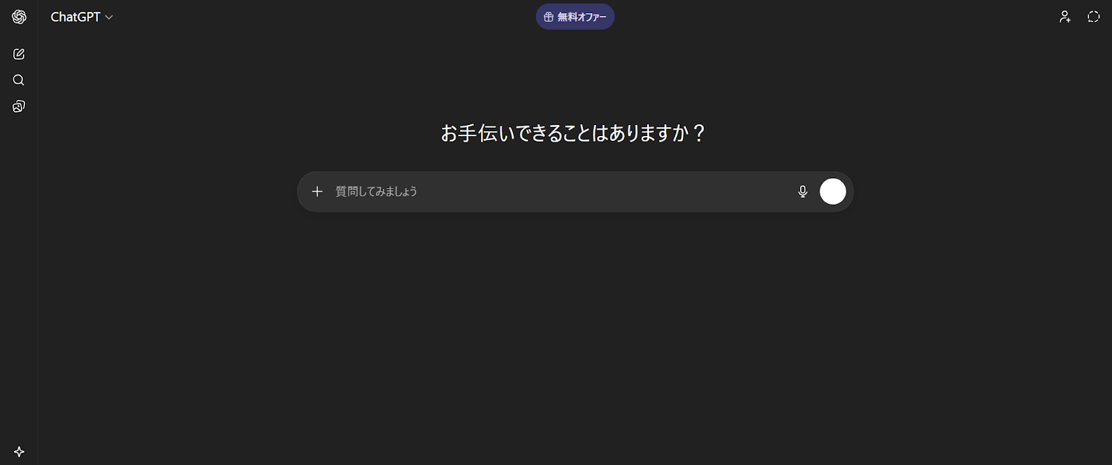 ChatGPTのチャット画面上にある入力ボックス(「質問してみましょう」という文言があるスペース)に、プロンプトを入力します。