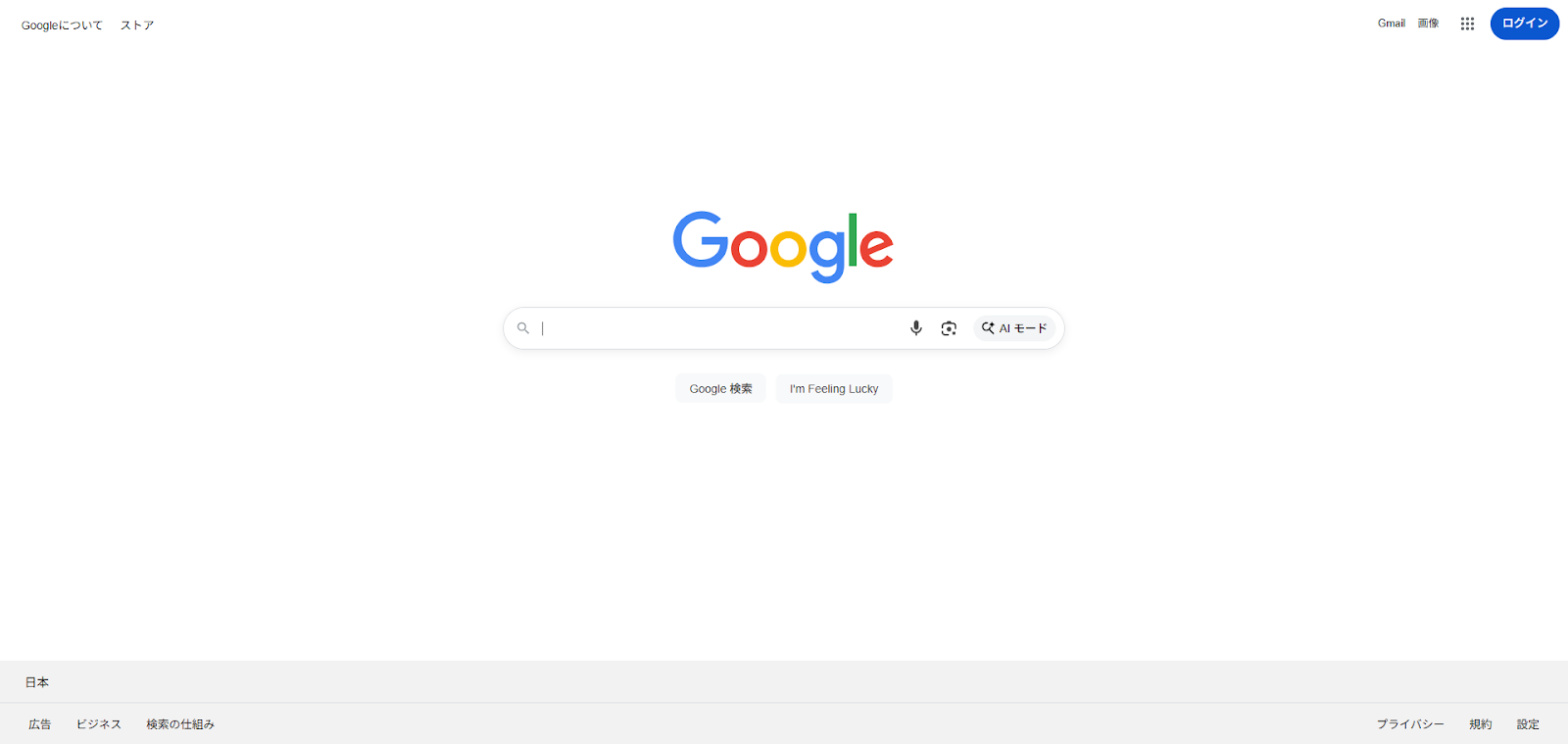 Googleトップページにアクセスし、右上の「ログイン」をクリックしてください。