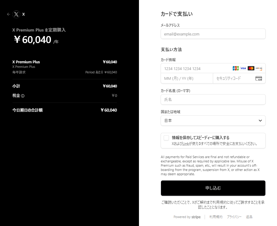 | X Premium+ | 6,080円(Xのアプリから加入すると8,000円) | 60,040円(Xのアプリから加入すると80,000円) |