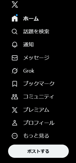 Webサイトの場合は左側のメニューバーにある「Grok」を、アプリの場合には下部のメニューバーにあるGrokのロゴマークをクリックすれば、チャット画面が立ち上がります。