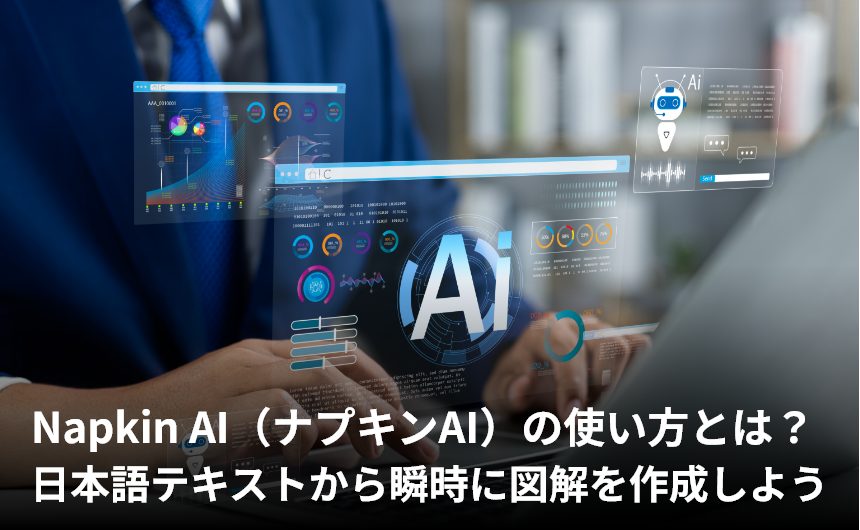 本記事では、ユーザーが入力したテキストから瞬時にフローチャートやインフォグラフィックなどの「伝わる図解」を生成できるツール「Napkin AI(ナプキン AI)」について解説しています。
