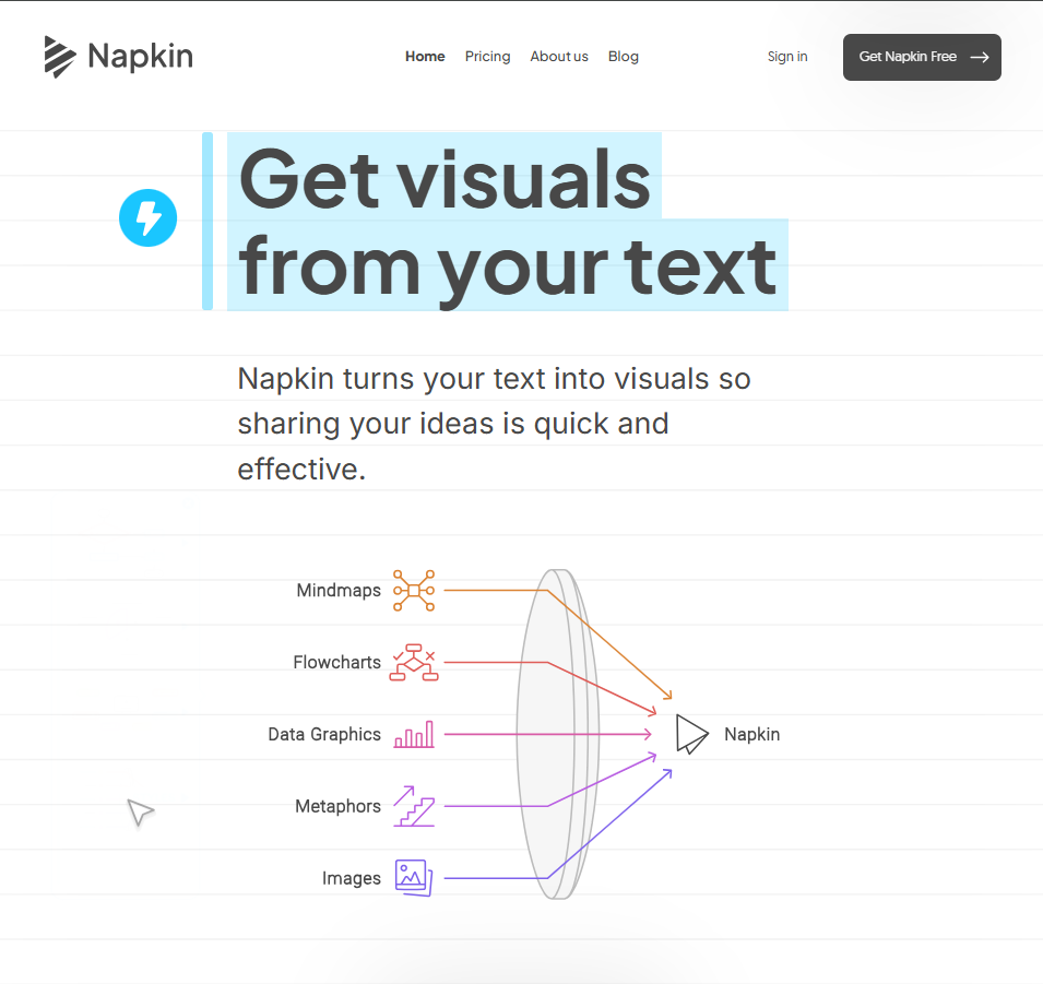 Napkin AI(ナプキンAI)は、ユーザーが入力したテキストを分析・構造化し、視覚的に分かりやすい図解を生成できる革新的なAIツールです。