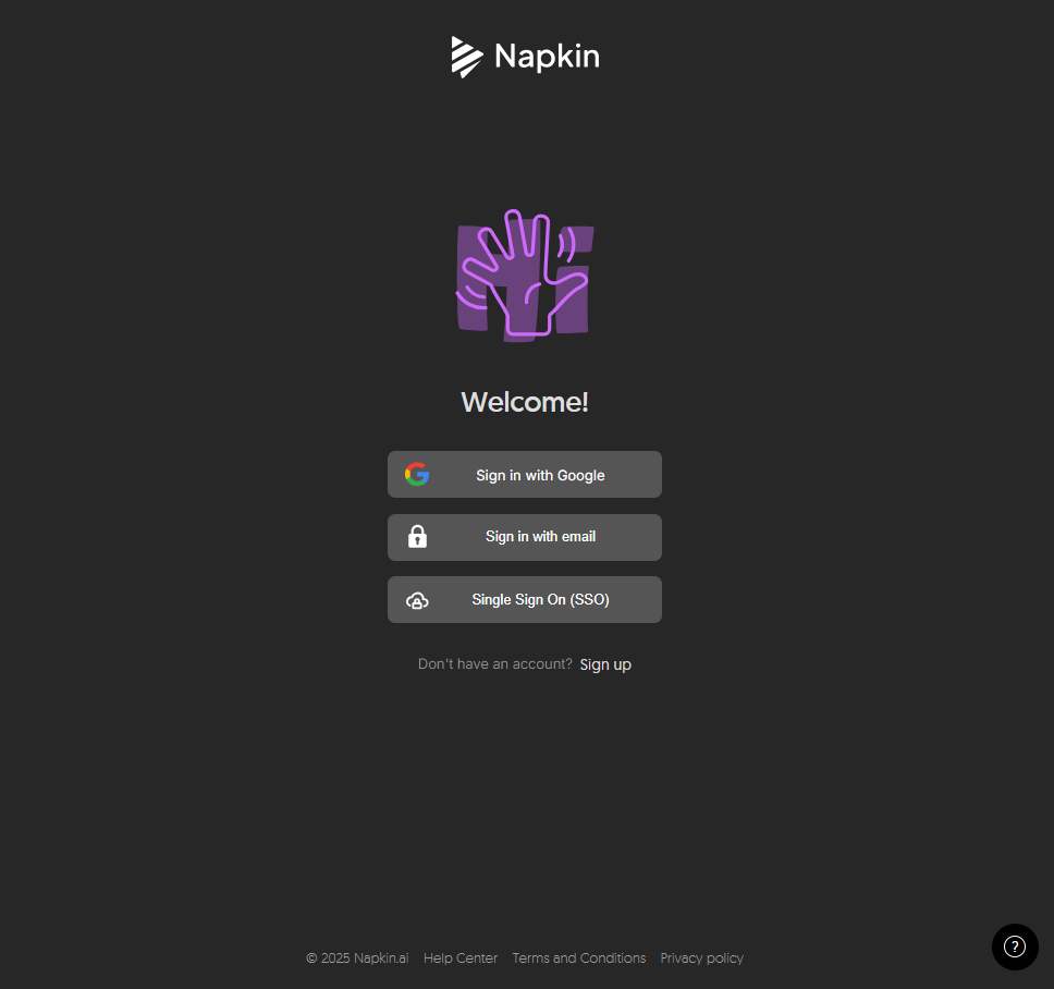 Napkin AIのアカウントは、「Googleアカウントとの連携」または「自身のメールアドレスで登録」のいずれかで作成可能です。