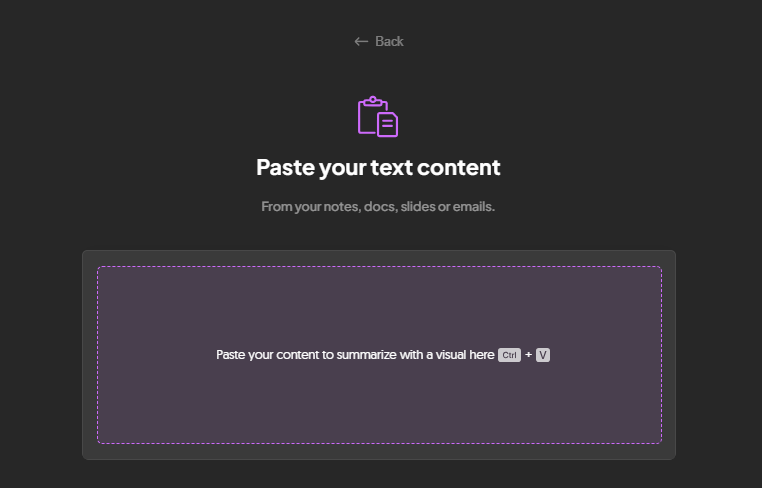 左の「By pasting my text content」ボタンをクリックすると、画面中央の窓に既存のテキストコンテンツを貼り付けられます。