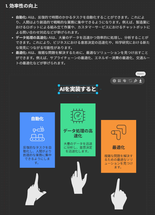 Napkin AIから生成された図解は、エクスポート(書き出し)が可能です。
