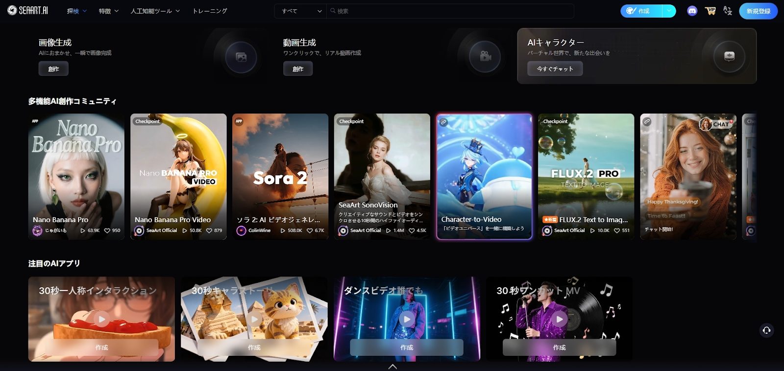 SeaArt.AIは、前述のStable Diffusionをベースにしている、管理画面のUIが洗練されていて使いやすい新進気鋭のサービス。日本語にも対応しており、直感的に操作できるのも嬉しいポイントです。