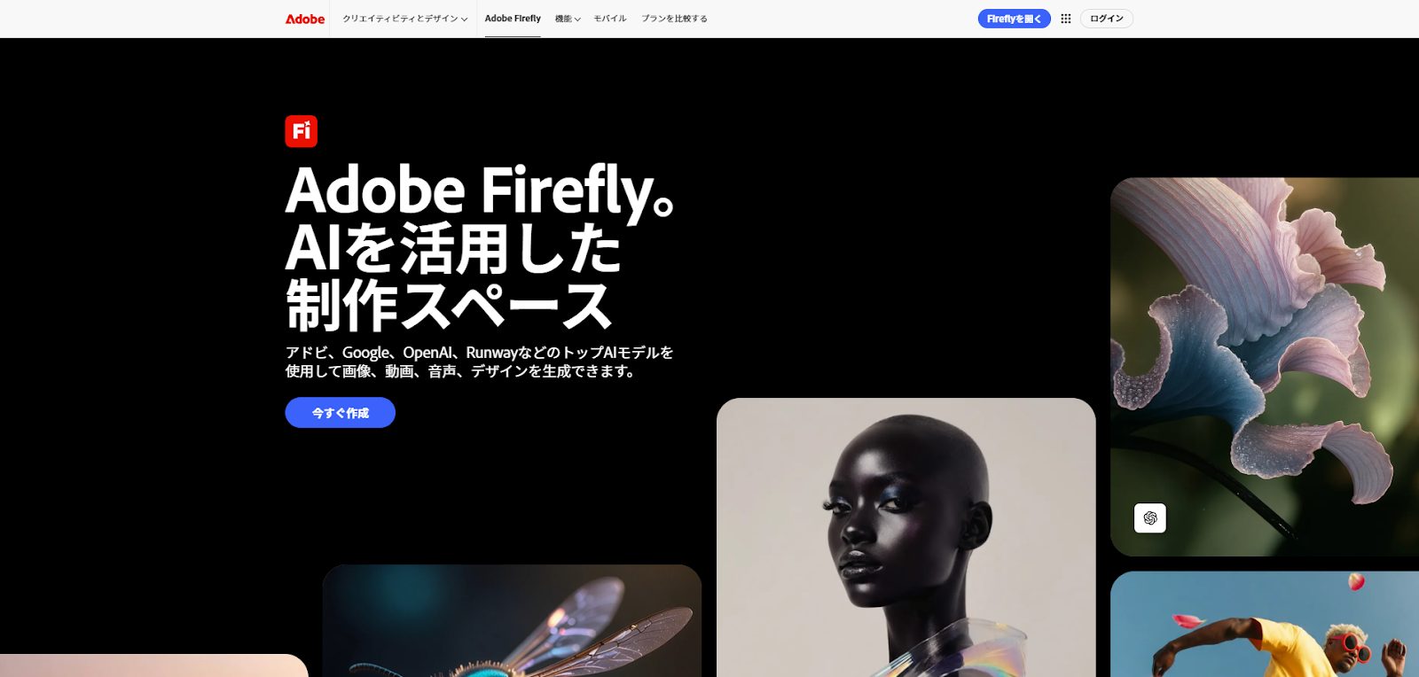 Adobe Fireflyは、PhotoshopやIllustratorといったデザインツールで有名なAdobeが提供する画像生成AIです。最大の特徴は、Adobe Stockの画像などから学習しているため、著作権侵害のリスクが低いこと。