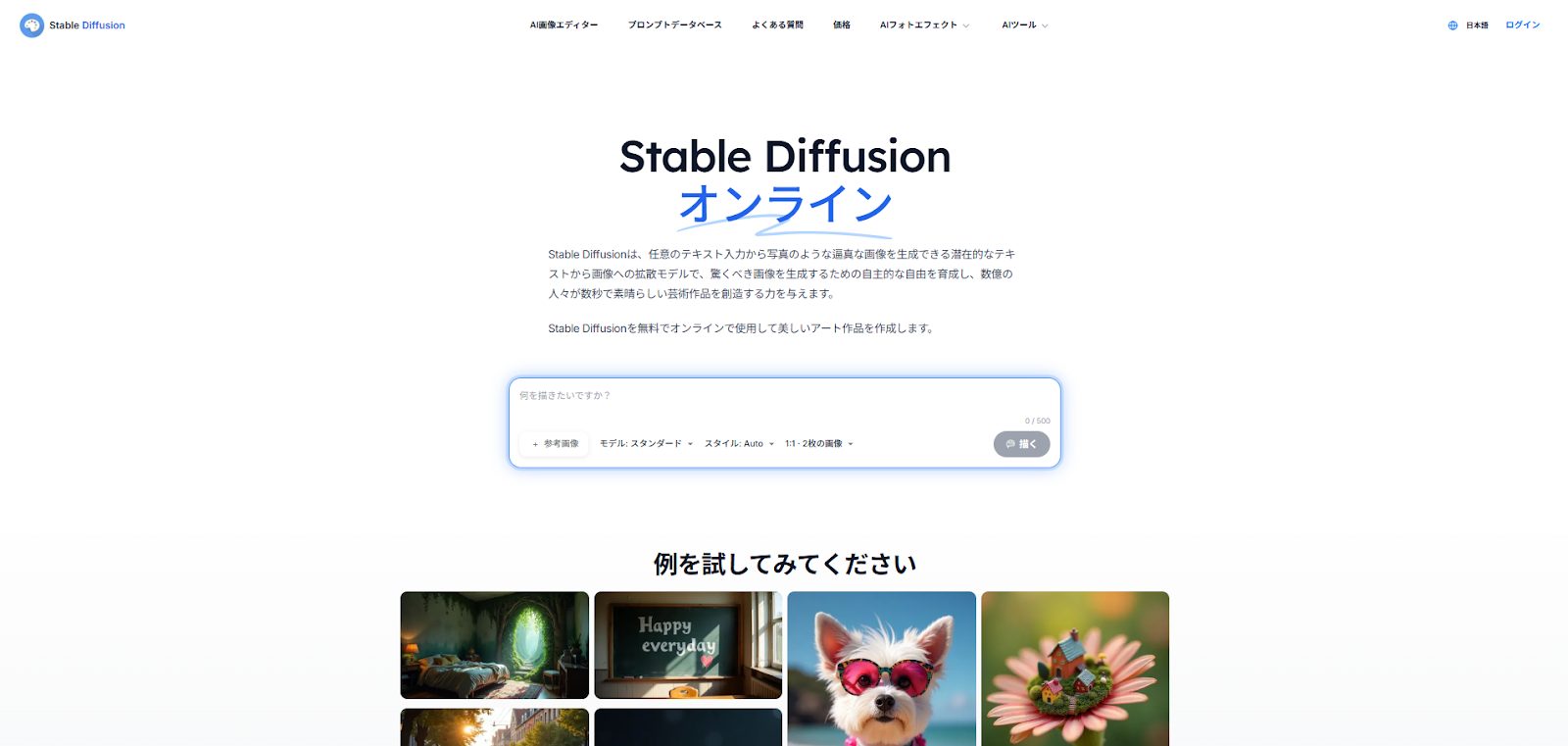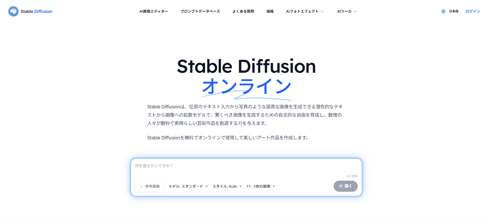オープンソースである、Stable Diffusionの公式開発元が提供するWebサービスです。個々のユーザーが自身のPCに環境を構築する手間もなく、ブラウザ上で最新のStable Diffusionモデルを手軽に利用できます。