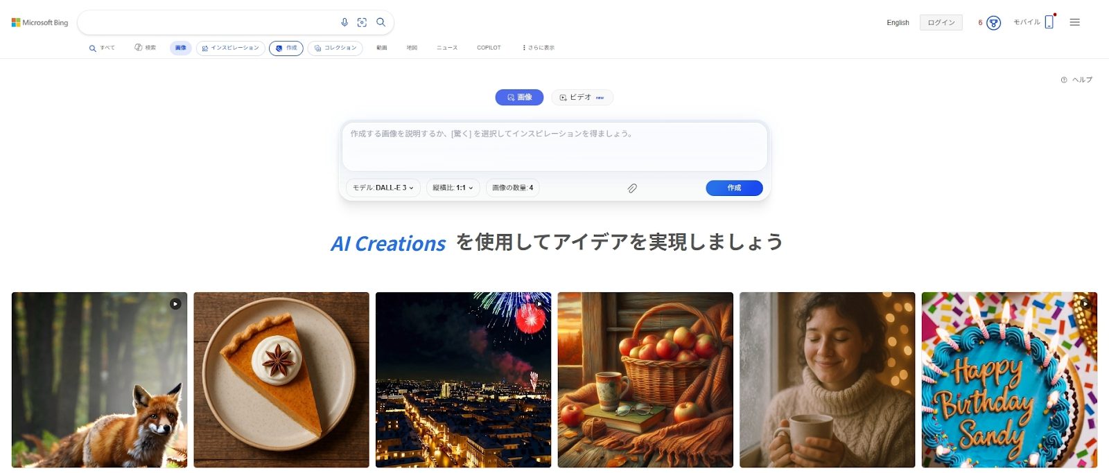 | Bing Image Creator | 最新のモデル「DALL-E 3」を無料で利用可能 | 高速生成(ブースト)回数制限あり | 〇 | 〇 |