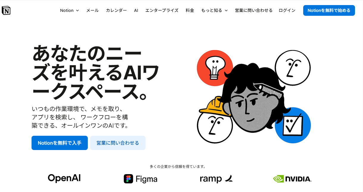 Notion Labs社が提供している AI アシスタント機能です。ドキュメントツールNotionに統合されており、議事録の要約や文章の改善、翻訳などがシームレスに可能です。