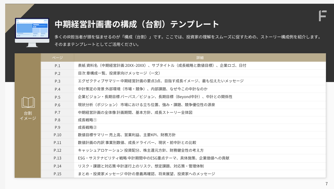 ・中期経営計画書の構成(台割)テンプレート
