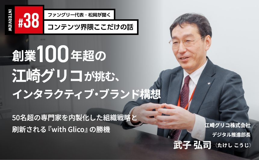 「コンテンツ界隈ここだけの話」第38話のゲストは、創業100年を超える国民的な食品メーカー、江崎グリコ株式会社のデジタル推進部長を務める武子弘司さんです。