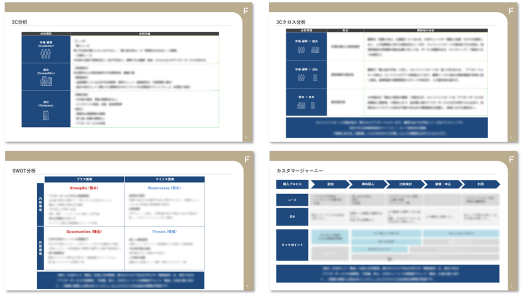 | 無料診断の流れ | 1.初回打ち合わせ・ヒアリング(30分~45分) ・事業内容や現在のマーケティング状況についての確認 ・課題の確認 ・次回のアクションとスケジュールの確認 2.マーケティング分析(3~5営業日) ・3C分析、3Cクロス分析、SWOT分析など ・カスタマージャーニーマップの作成やサイトリニューアルの方向性の提示 |